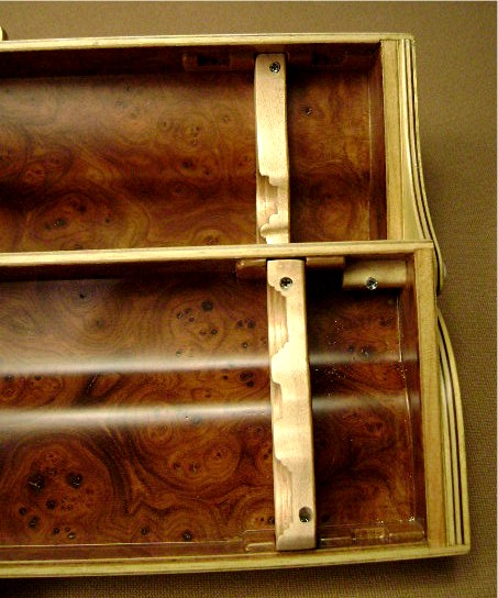 Exterior: Quarter Figured Sycamore Veneer with Avodire (Africa) hardwood edge. |